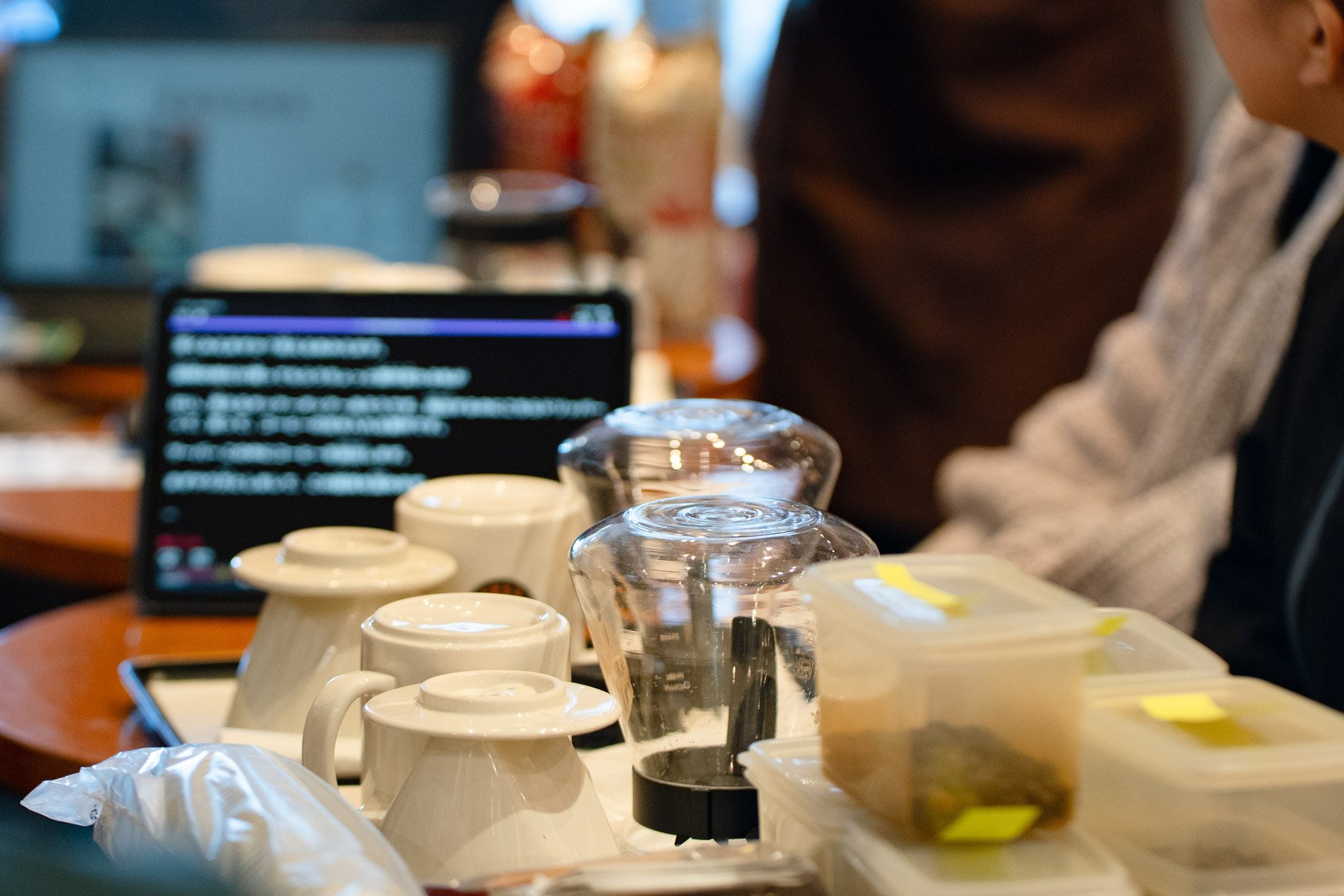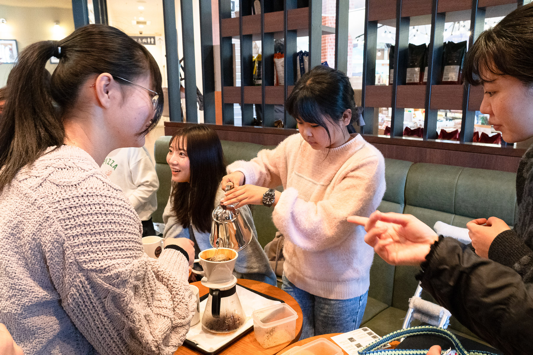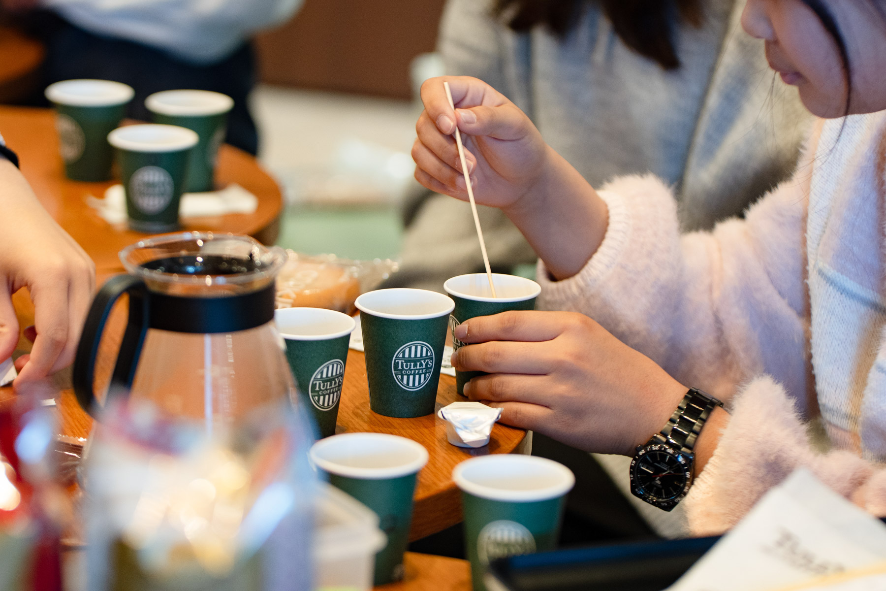 タリーズ店員さんの手ほどきによるハンドドリップ体験や接客練習