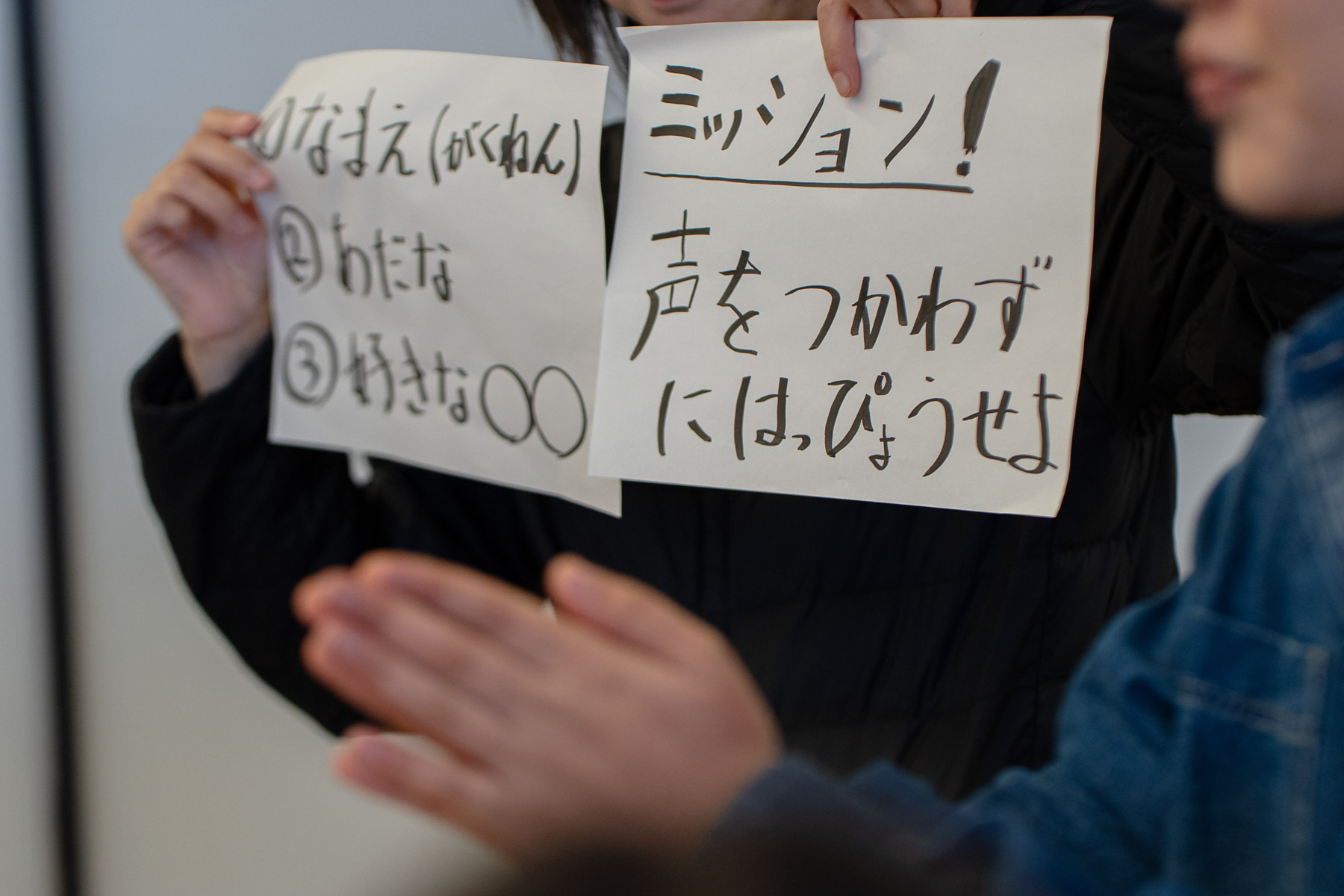 そのミッションがなんと、「声をつかわずにはっぴょうせよ!」笑