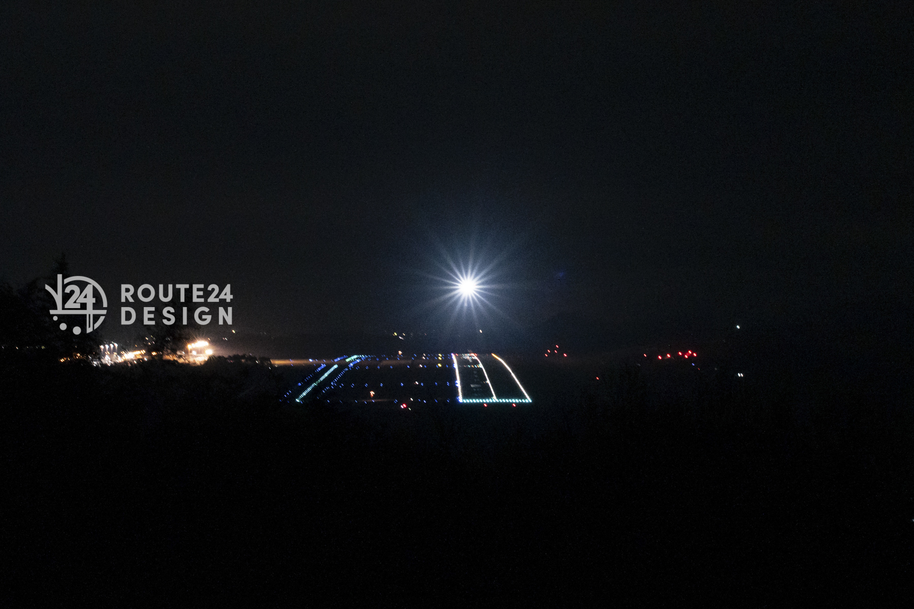 タイミングがあえば、光る滑走路に降り立つ、飛行機の着陸灯と機影も楽しむことができます!